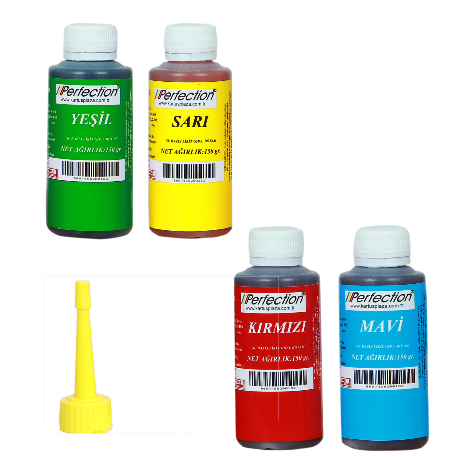 Perfection Chef 4'lü Sıvı Su Bazlı Likit Gıda Boyası Sarı Kırmızı Mavi Yeşil 4 x 150 gr .